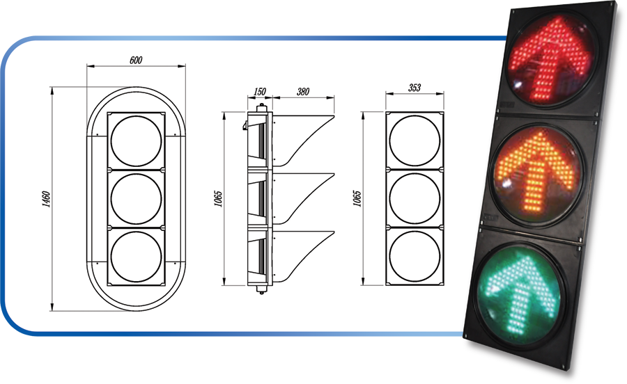 鼎光 FX300-3-DA LED方向指示信號燈采用LED發(fā)光方式,符合國標《道路交通信號燈》(GB14887-2011)的要求,并且 通過了公安部交通安全產(chǎn)品質(zhì)量監(jiān)督檢測中心的檢測。交叉口信號燈按車道功能設置,每組信號燈為具有可顯示紅、黃、綠三 色箭頭燈和全屏燈功能的燈具,安裝附于車道下游的懸臂桿或立柱式燈桿上,燈桿基礎必須安裝地線,接地電阻小于或等于10 歐姆。