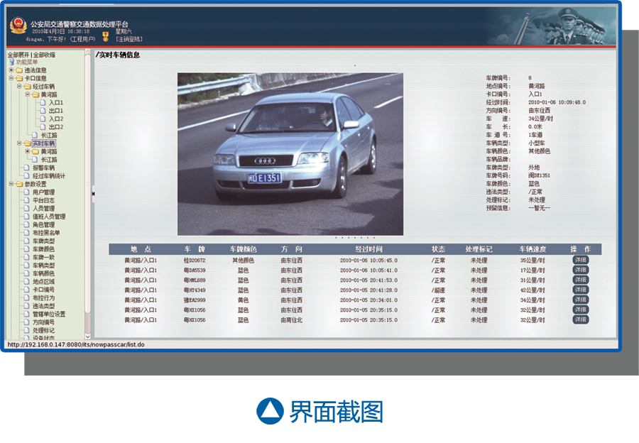 DA-931后平臺數(shù)據(jù)管理系統(tǒng)采用B/S結(jié)構(gòu),通過WEB方式登陸訪問,采用一般瀏覽器作為客戶端,無需進(jìn)行客戶端維護(hù),支持通過網(wǎng)絡(luò)進(jìn)行遠(yuǎn)程訪問。系統(tǒng)以性能穩(wěn)定、人性化為設(shè)計原則,系統(tǒng)人機(jī)界面和諧,操作簡單快捷,大大提高對數(shù)據(jù)的處理效率。作為開放、統(tǒng)一的的用戶平臺,DA-931后平臺數(shù)據(jù)管理系統(tǒng)支持公路車輛智能監(jiān)測記錄系統(tǒng)(卡口系統(tǒng))、闖紅燈自動記錄系統(tǒng)、區(qū)間測速系統(tǒng)等系統(tǒng)。公路車輛智能監(jiān)測記錄系統(tǒng)(卡口系統(tǒng))過往車輛數(shù)據(jù)管理模塊對每個卡口點傳回的車輛信息數(shù)據(jù)進(jìn)行統(tǒng)一存儲,并提供過往車輛信息的查詢調(diào)看、車流量統(tǒng)計、嫌疑車輛的布控等服務(wù)。闖紅燈自動記錄系統(tǒng)違法車輛數(shù)據(jù)管理模塊負(fù)責(zé)對每個前段路口傳回的違法照片進(jìn)行分類入庫,并通過人工 篩選有效違法證據(jù)照片進(jìn)行處理打印罰單。系統(tǒng)也提供違法數(shù)據(jù)的查詢和違法流量的統(tǒng)計。區(qū)間測速系統(tǒng)過往車輛及違法車輛數(shù)據(jù)管理模塊除了對前端測速點過往車輛信息的記錄,還提供對超速數(shù)據(jù)的自動分離和存儲,通過人工確認(rèn)有效違法數(shù)據(jù)進(jìn)行處理打印罰單。系統(tǒng)也提供違法數(shù)據(jù)的查詢和違法流量的統(tǒng)計。